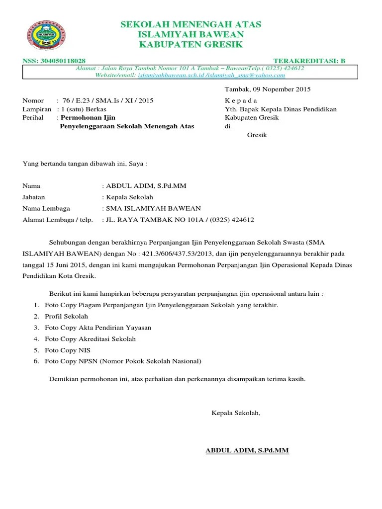 Surat pernyataan tanggung jawab mutlak. Bendel permohonan perpanjanganijin penyelenggaraan sekolah swasta1.surat permohonan 2.profil sekolah3.ijin penyelenggaraan sekolah swasta4. Kumpulan gambar tentang contoh surat permohonan izin operasional sekolah, klik untuk melihat koleksi gambar lain di kibrispdr.org. Memberikan perpanjangan izin operasional sekolah swasta kepada : 6, izin prinsip sekolah menengah atas (sma) fotokopi.